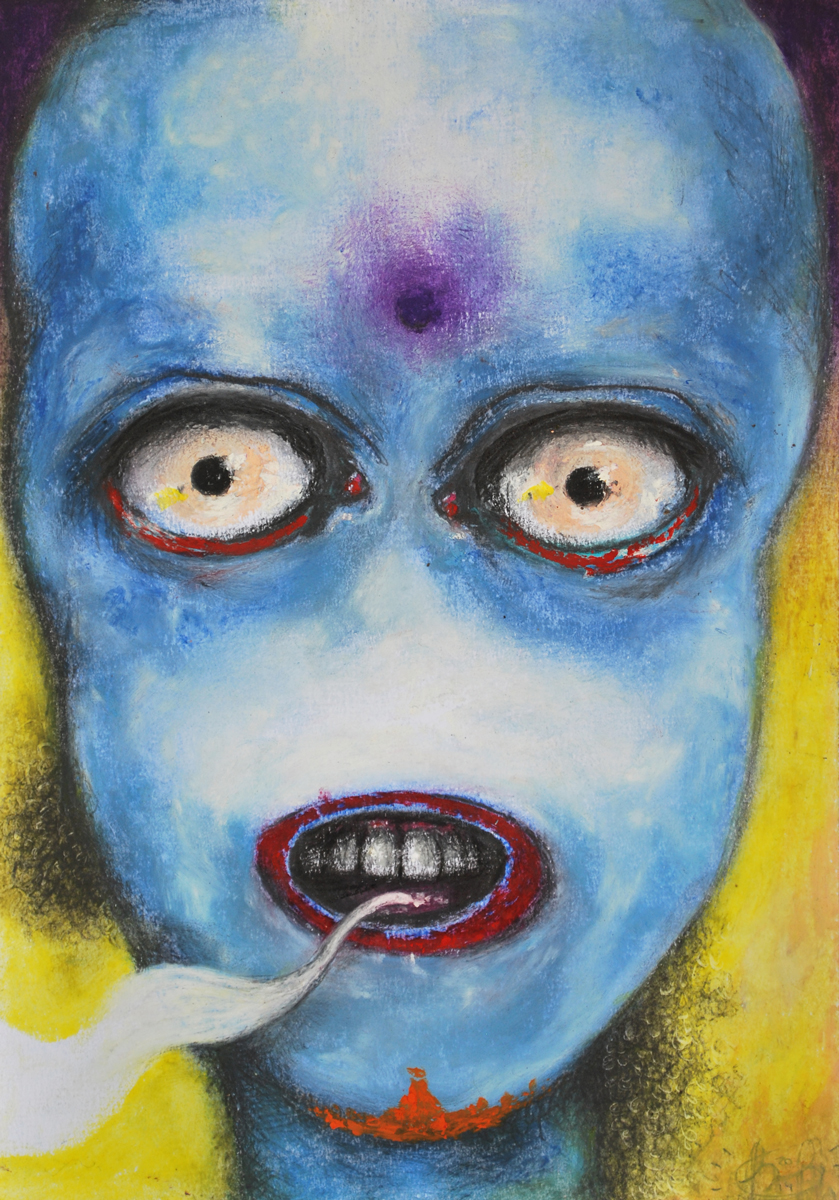 Pasteles al aceite y lápiz negro sobre papel rugoso