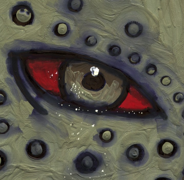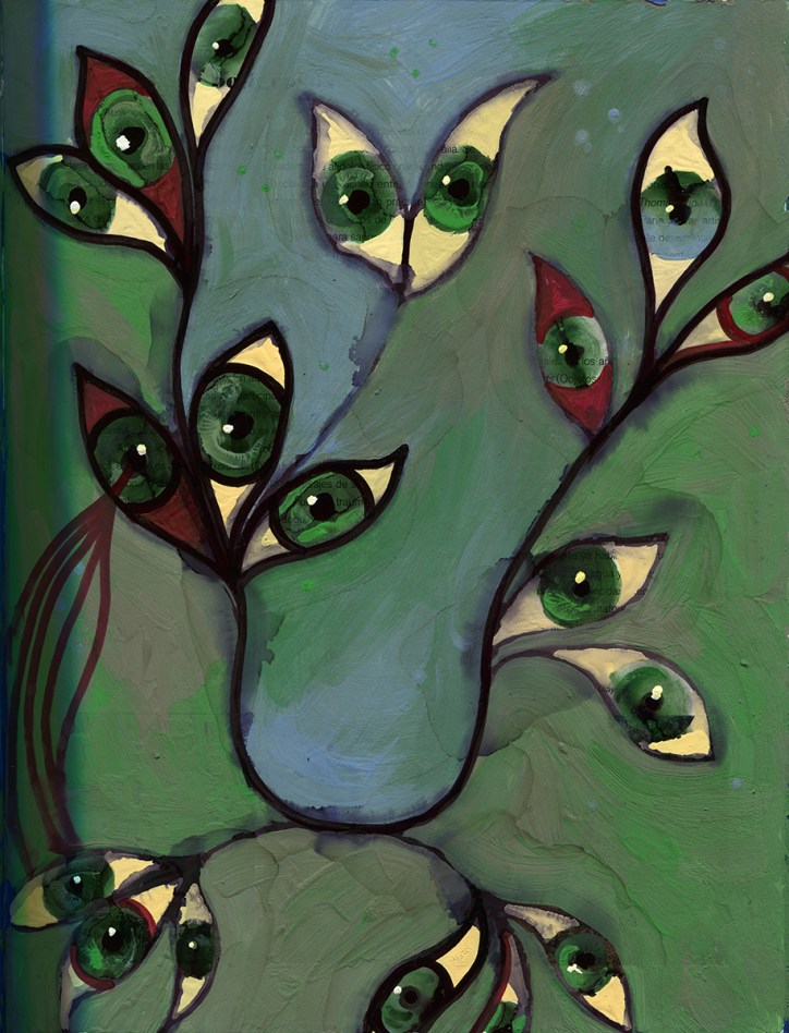 Gouache, ink and acrylic on book paper