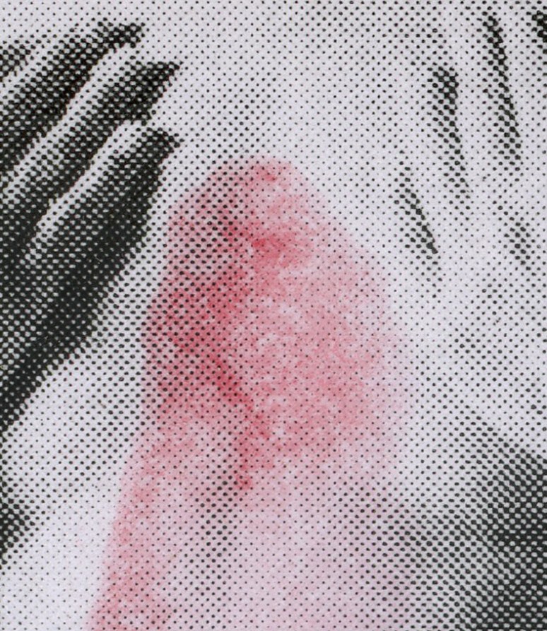 Digital photography printed on white paper + red ink + ethanol + fire